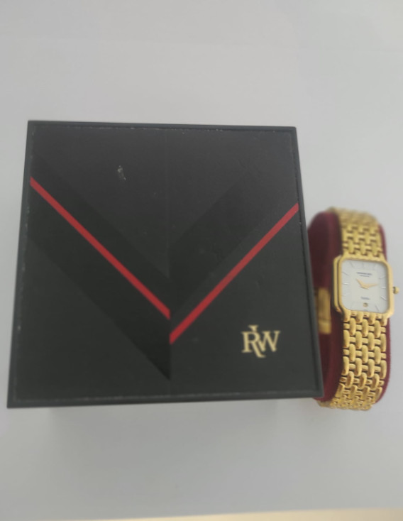 -Movimento Quartz -Caixa plaqué 23x28mm -Calendário -Estojo original -Pulseira plaqué -Proveniente de Coleção Particular PVP €250