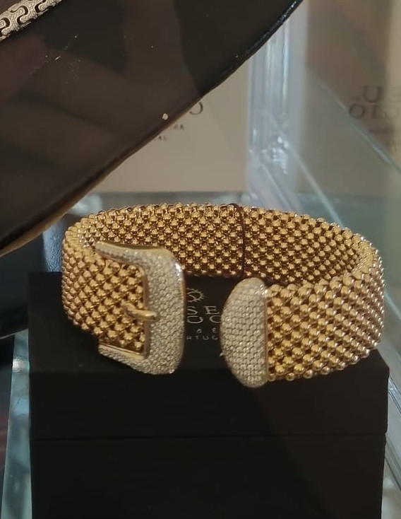 -Pulseira em C aberta de Prata banhada a ouro -Estilo fivela de pulseira para Relógio -Detalhes em brilhantes PVP €460
